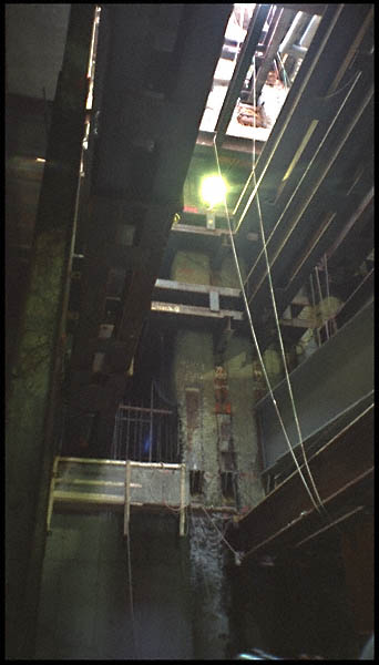 This is looking up towards the street level. At this point, we were just about below South Station, and some of the side of that building was viaible from this hole.